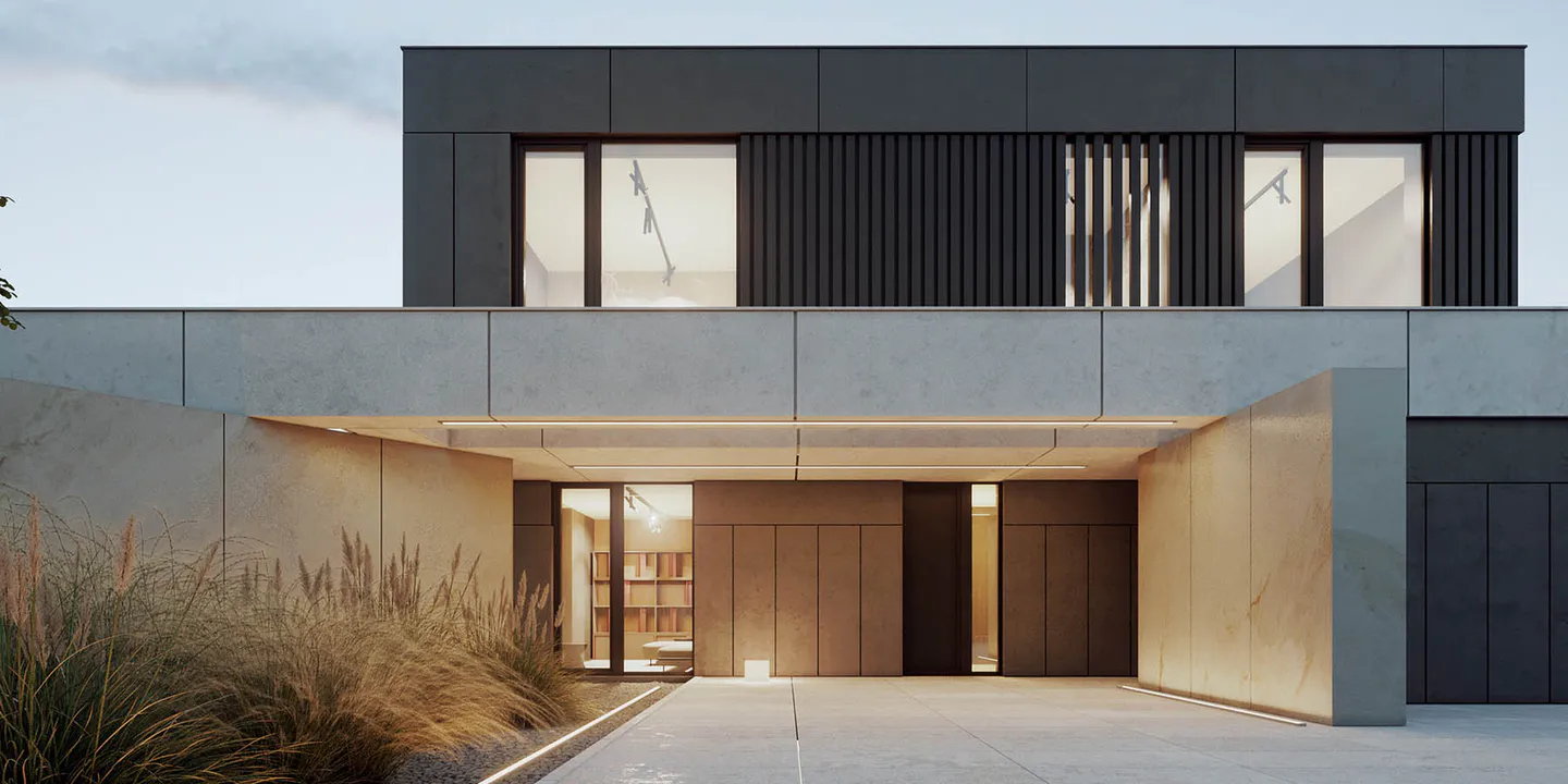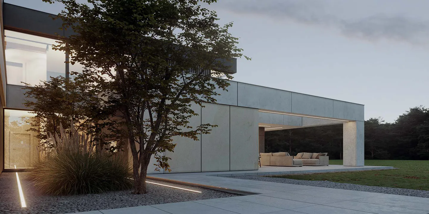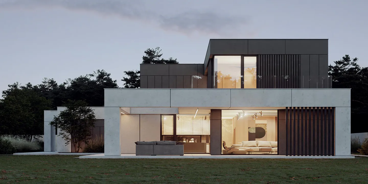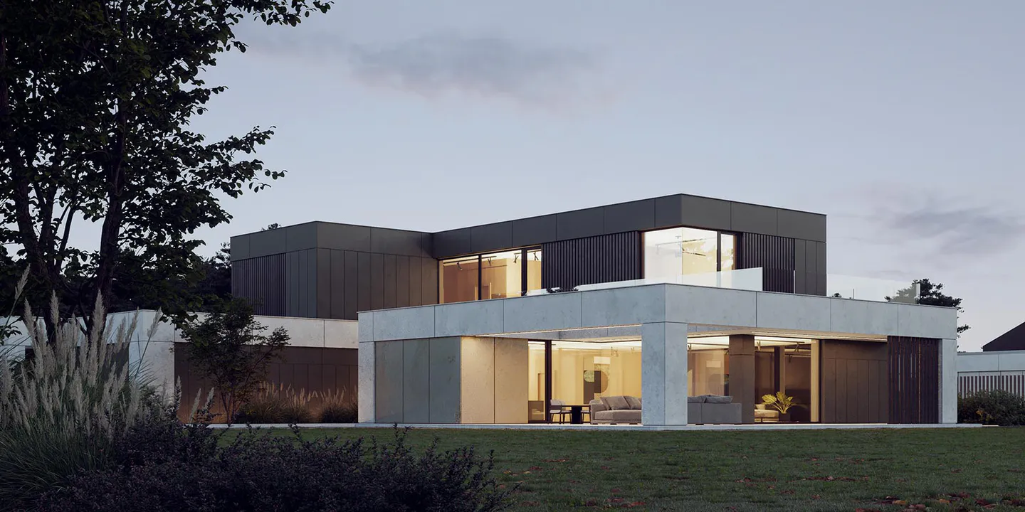 Проект представляет собой двухэтажный дом минималистичного дизайна, где функциональность и эстетика сливаются воедино, создавая гармоничное жилое пространство.
