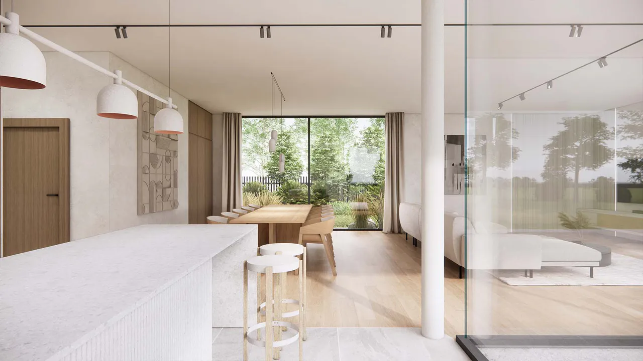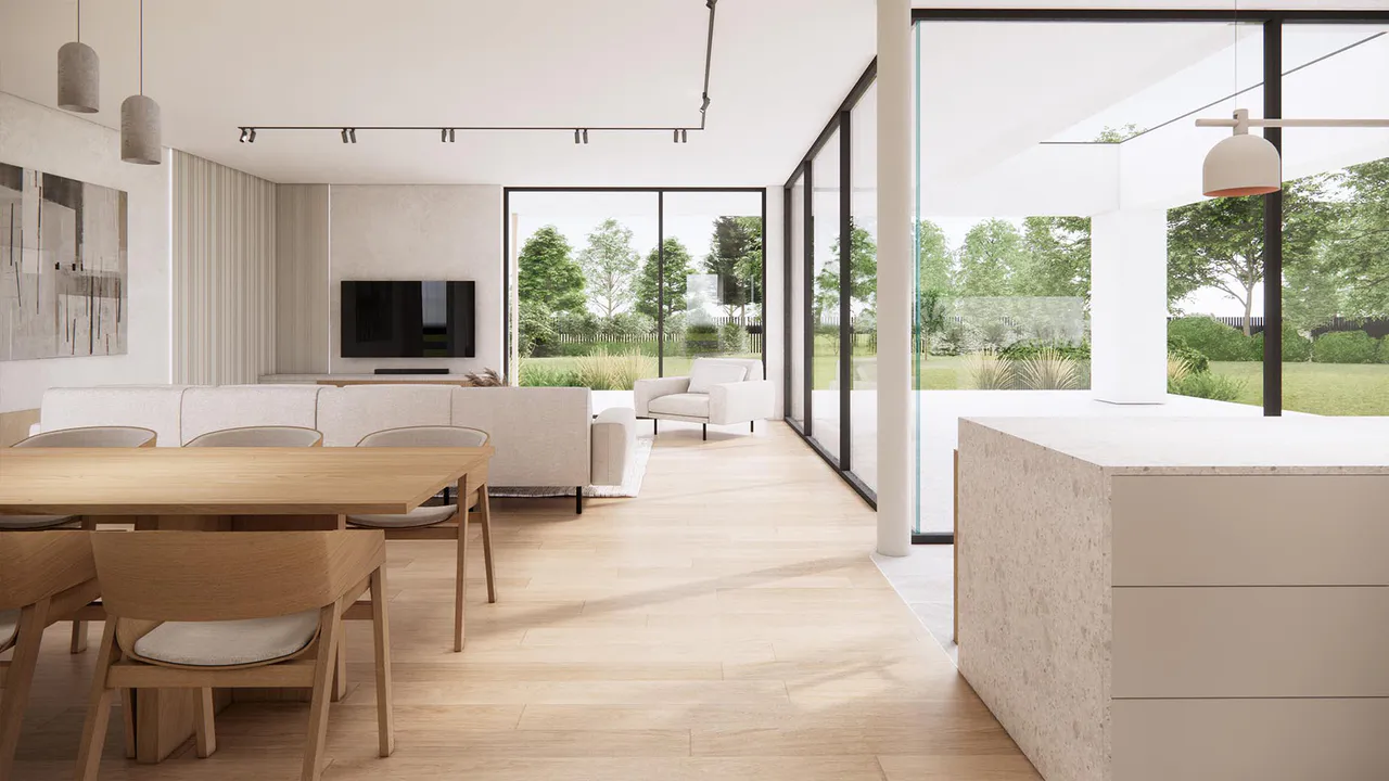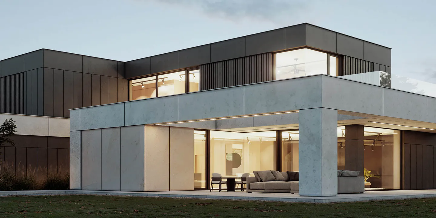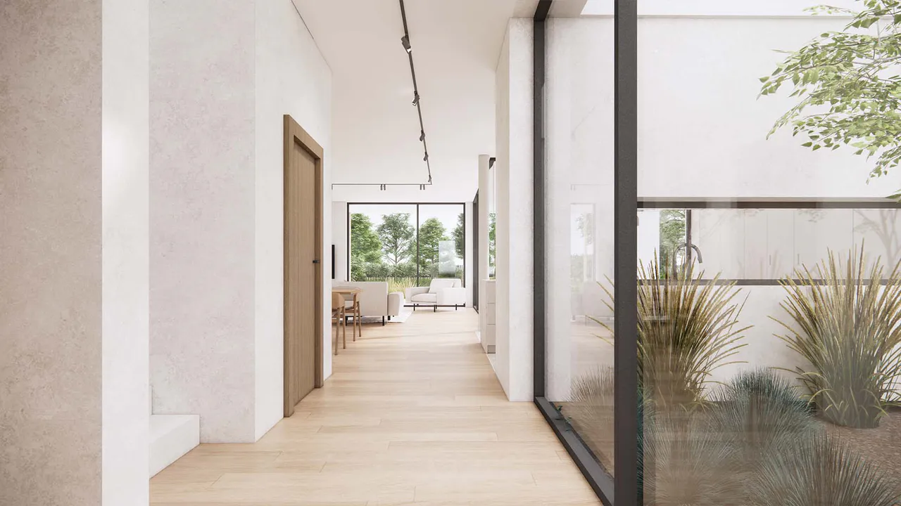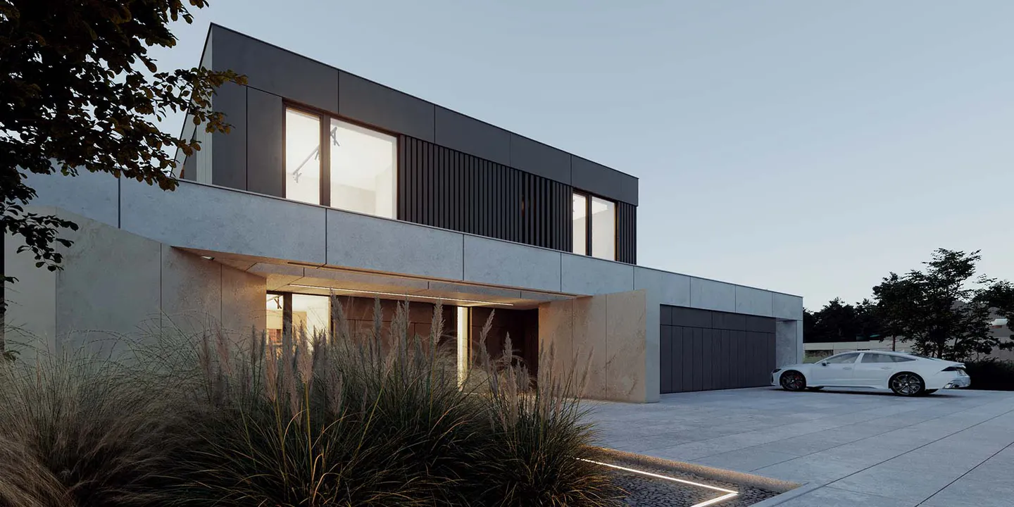 Проект представляет собой двухэтажный дом минималистичного дизайна, где функциональность и эстетика сливаются воедино, создавая гармоничное жилое пространство.