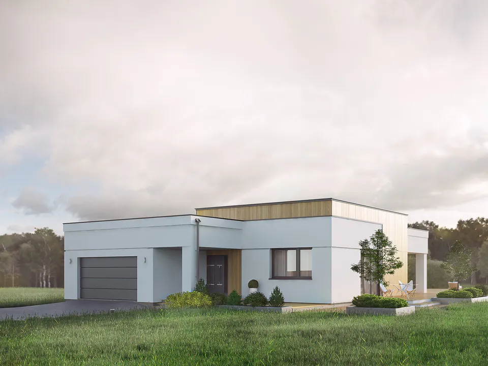 Проект современного одноэтажного дома с плоской крышей.