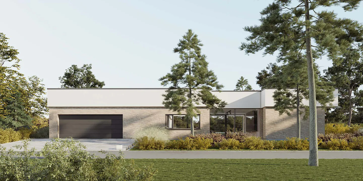 Проект современного одноэтажного дома с гаражом, в минималистичном стиле Хайтек.
