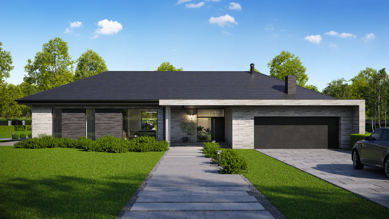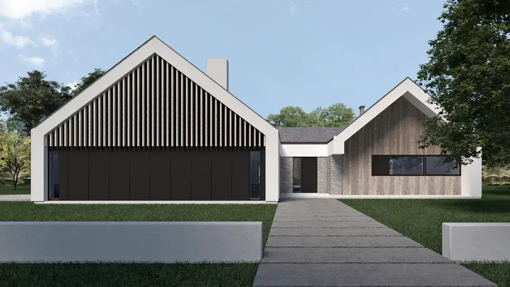 Двухквартирный дом с раздельным входом и террасой спроектирован на две семьи. Каждое помещение спроектировано с учетом потребностей двух семей, обеспечивая четкие и удобные раздельные зоны.