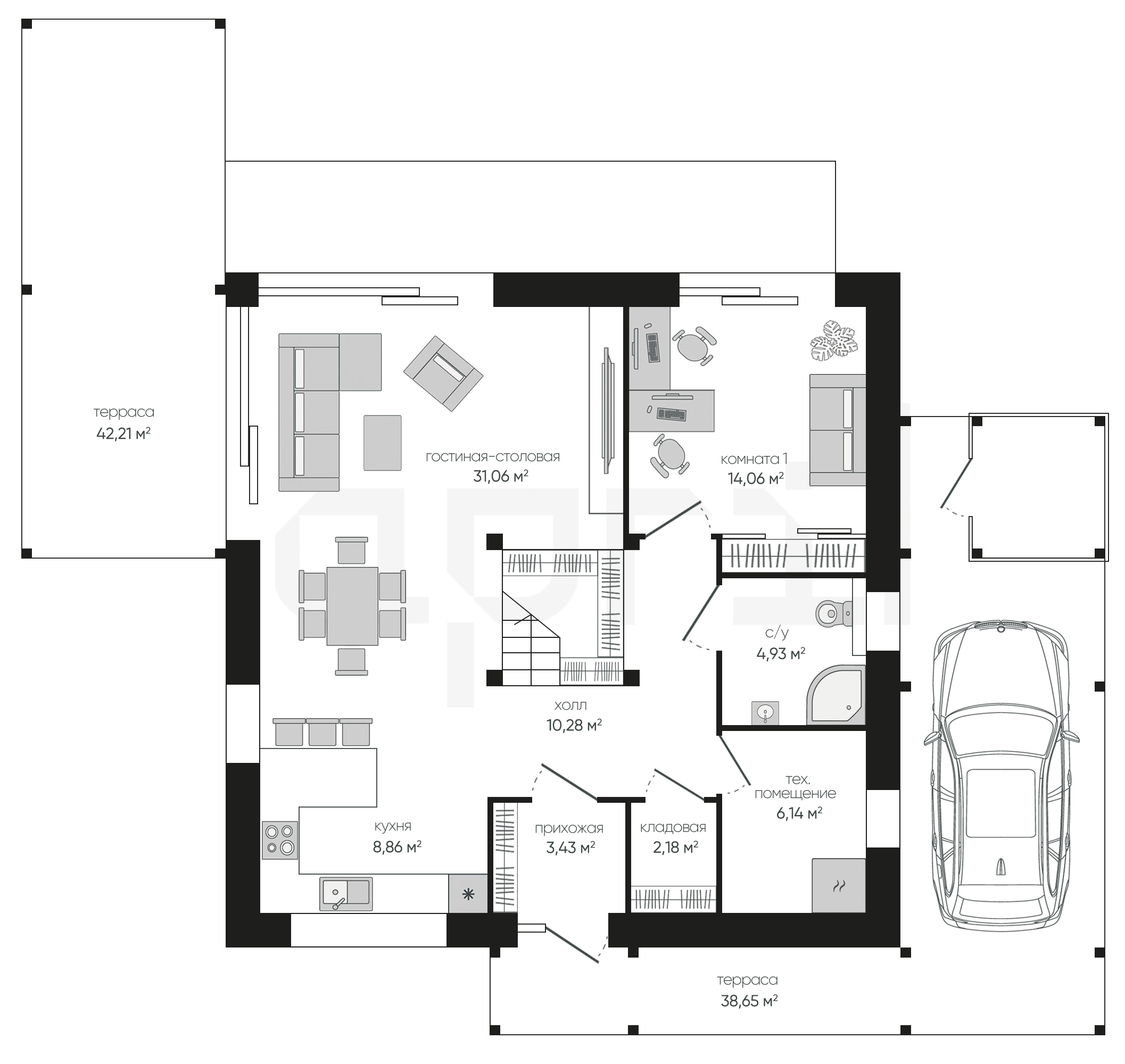Дома 1 этаж с гаражом и террасой