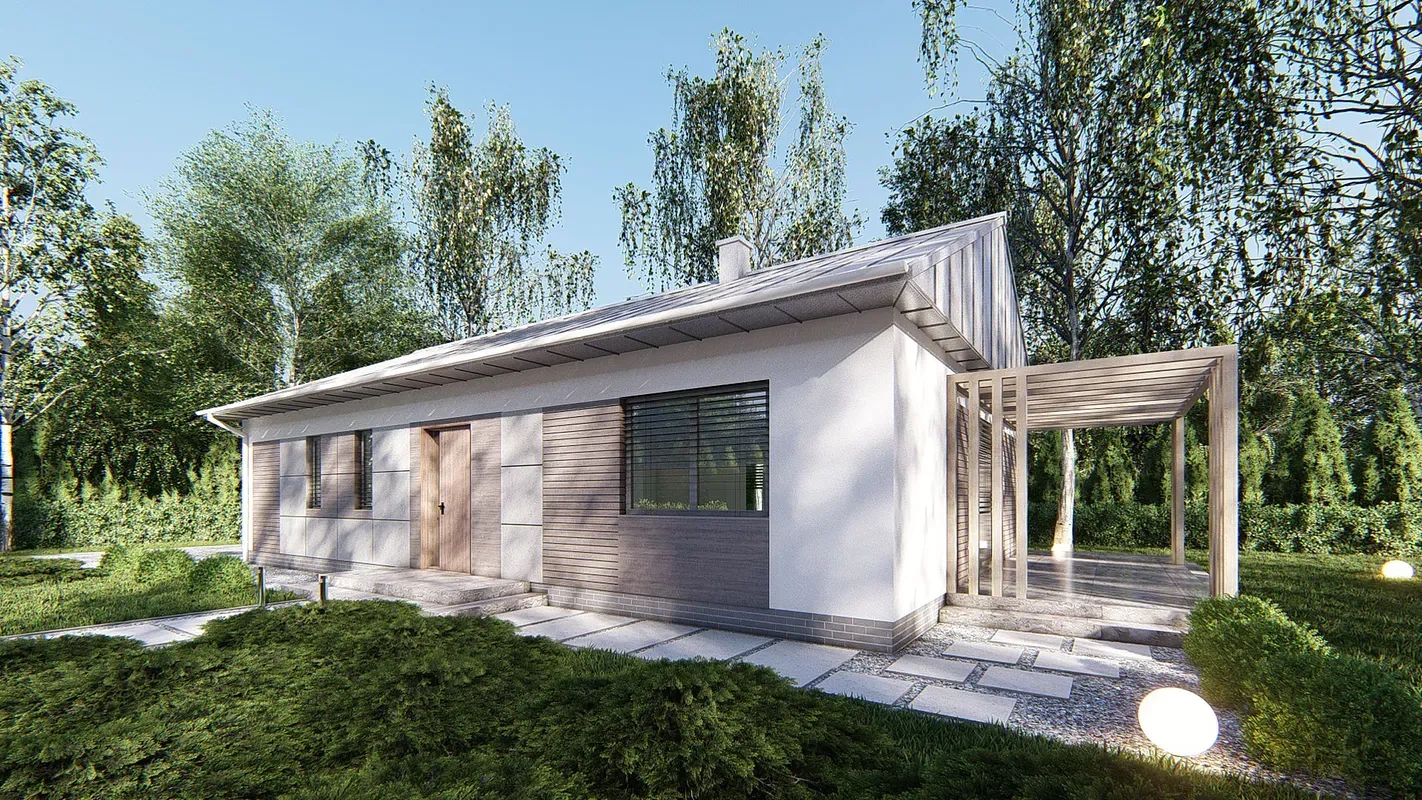 Проект представляет собой предложение простого и экономичного в постройке и в содержании дома с двускатной крышей.