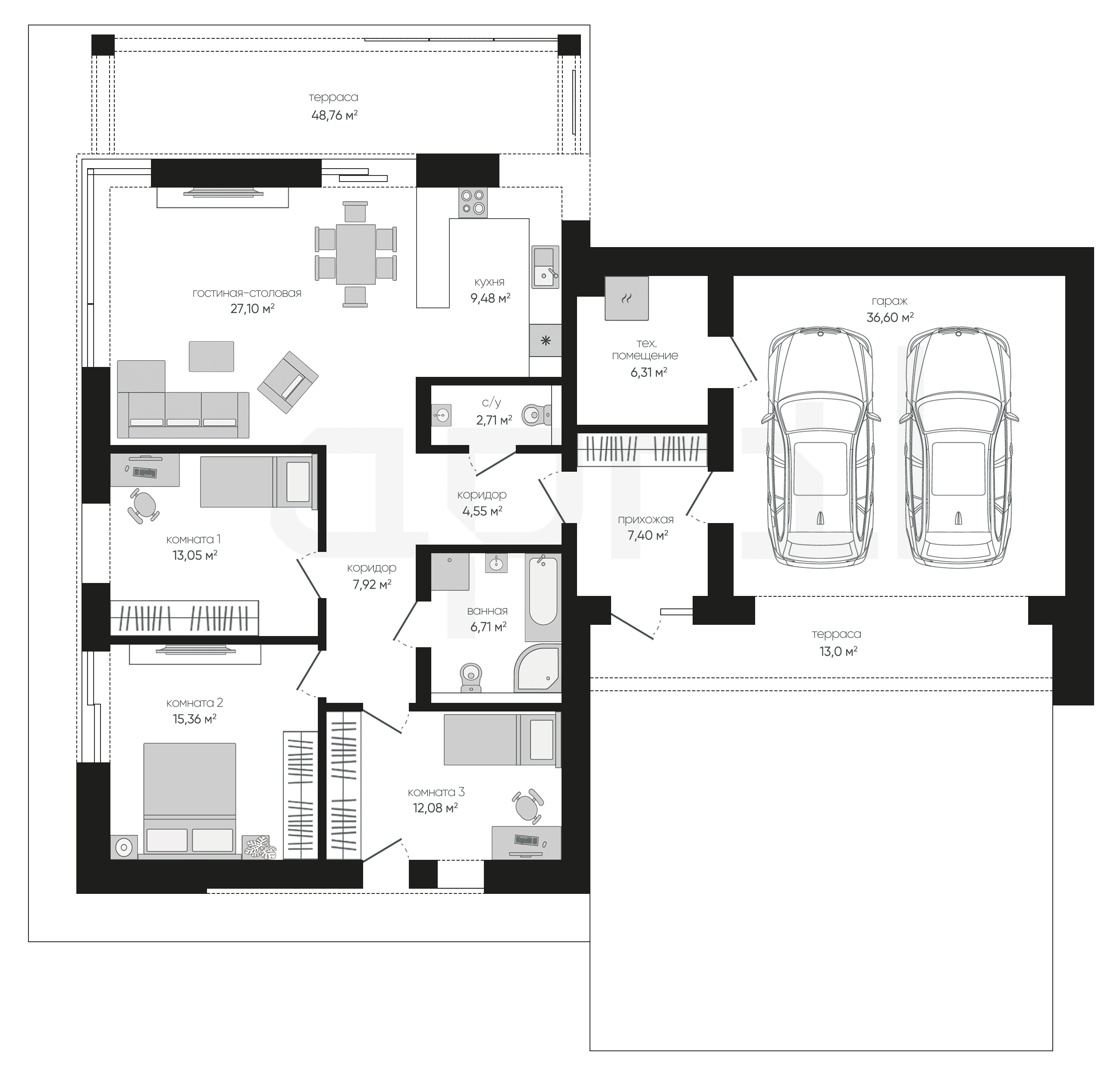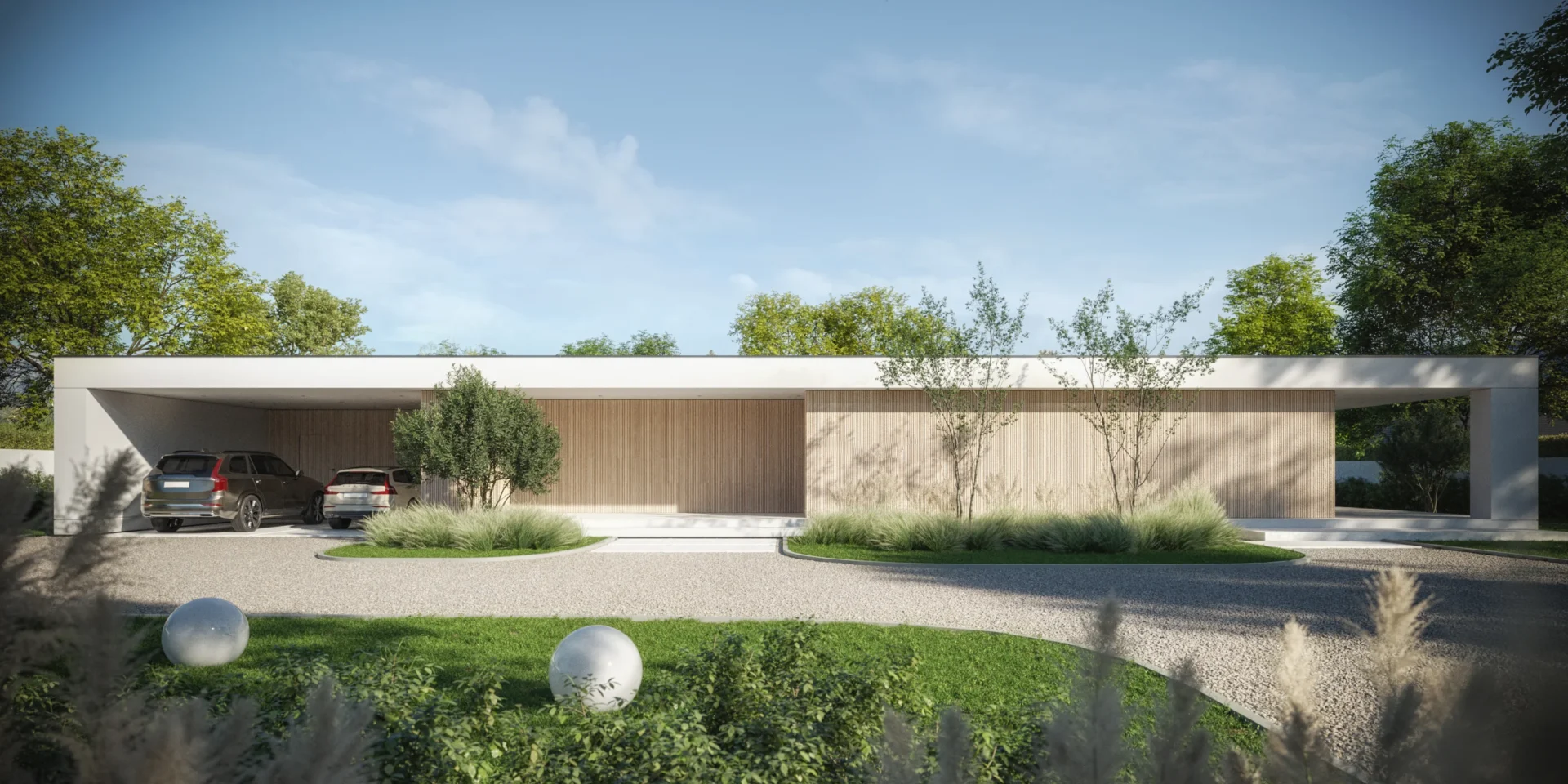 Проект современного дома с минималистичным дизайном, чистыми линиями и сбалансированными пропорциями сочетает современную эстетику с комфортом и гармонией с окружающей природой.