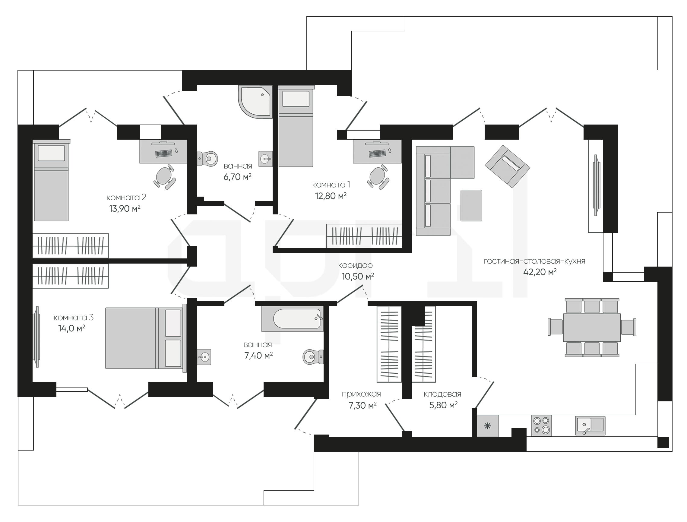 Гостиная-столовая-кухня
