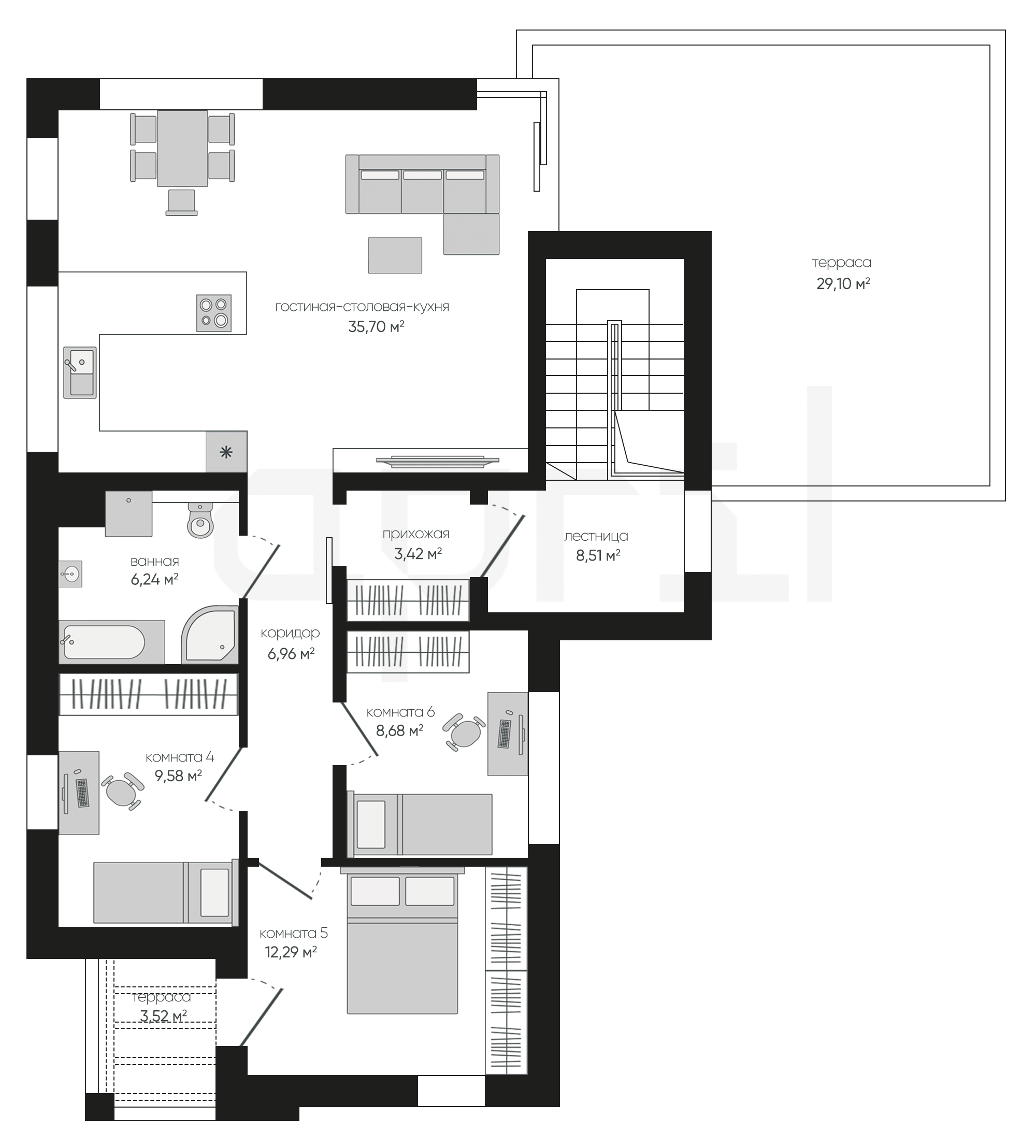 Проект двухэтажного дома с двумя квартирами подойдет для молодой семьи с родителями, а также друзей или незнакомым семьям кто хочет построить дом за городом.