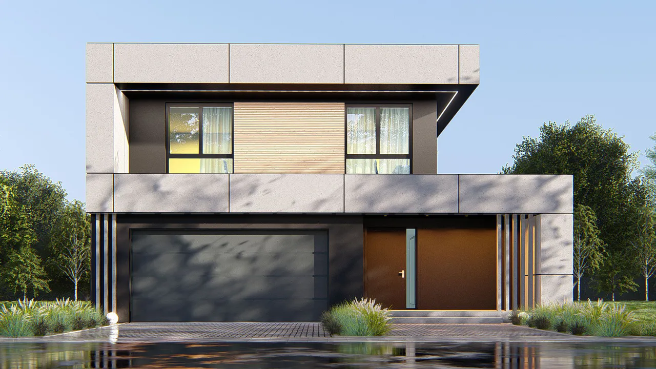Проект представляет собой функциональный и эстетически привлекательный современный дом, спроектированный для комфортного проживания.
