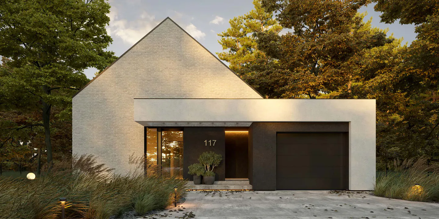Современные материалы, такие как стекло, бетон и сталь, придают дому элегантный и индустриальный вид.