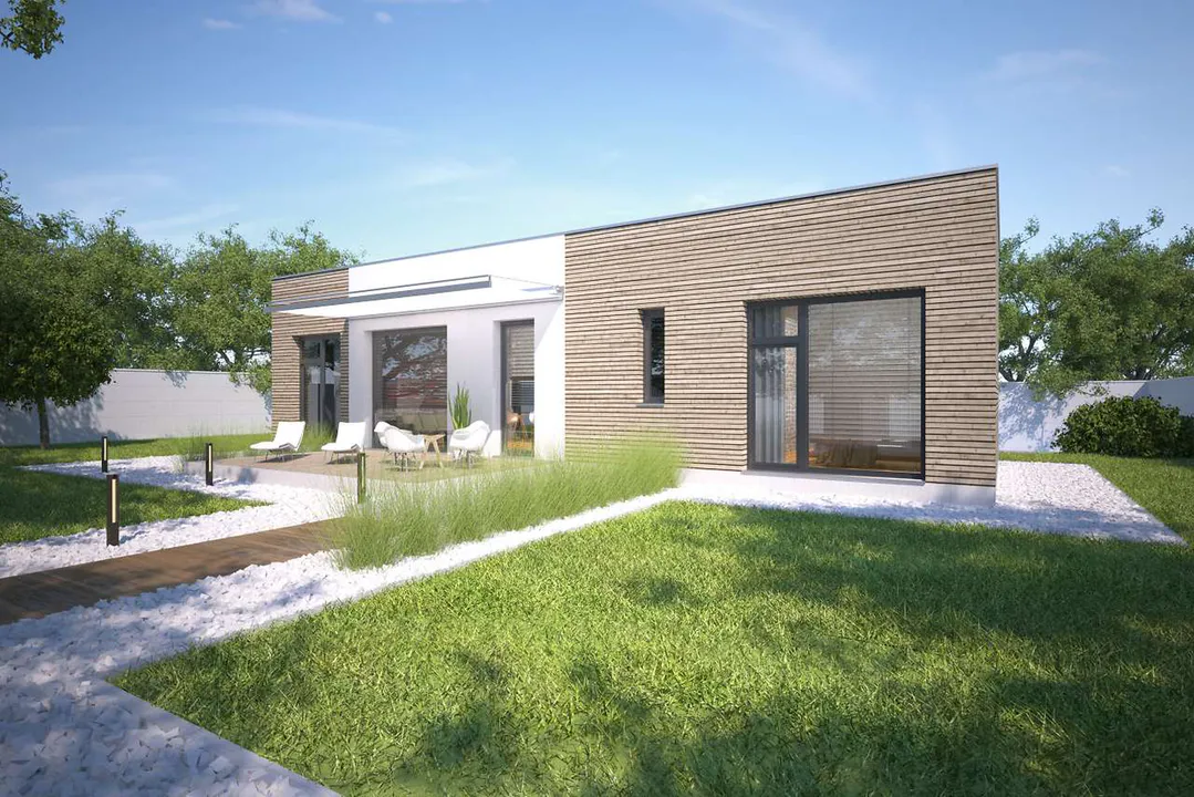 Компактный и эффектный, дом с плоской кровлей отлично вписывается в ландшафт, предлагая множество возможностей даже на узком участке.