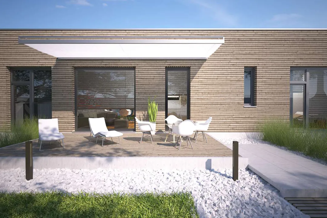 Панорамное остекление и плоская кровля не только формируют современный стиль, но и радикально меняют восприятие пространства даже небольшого дома.