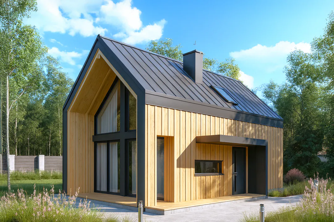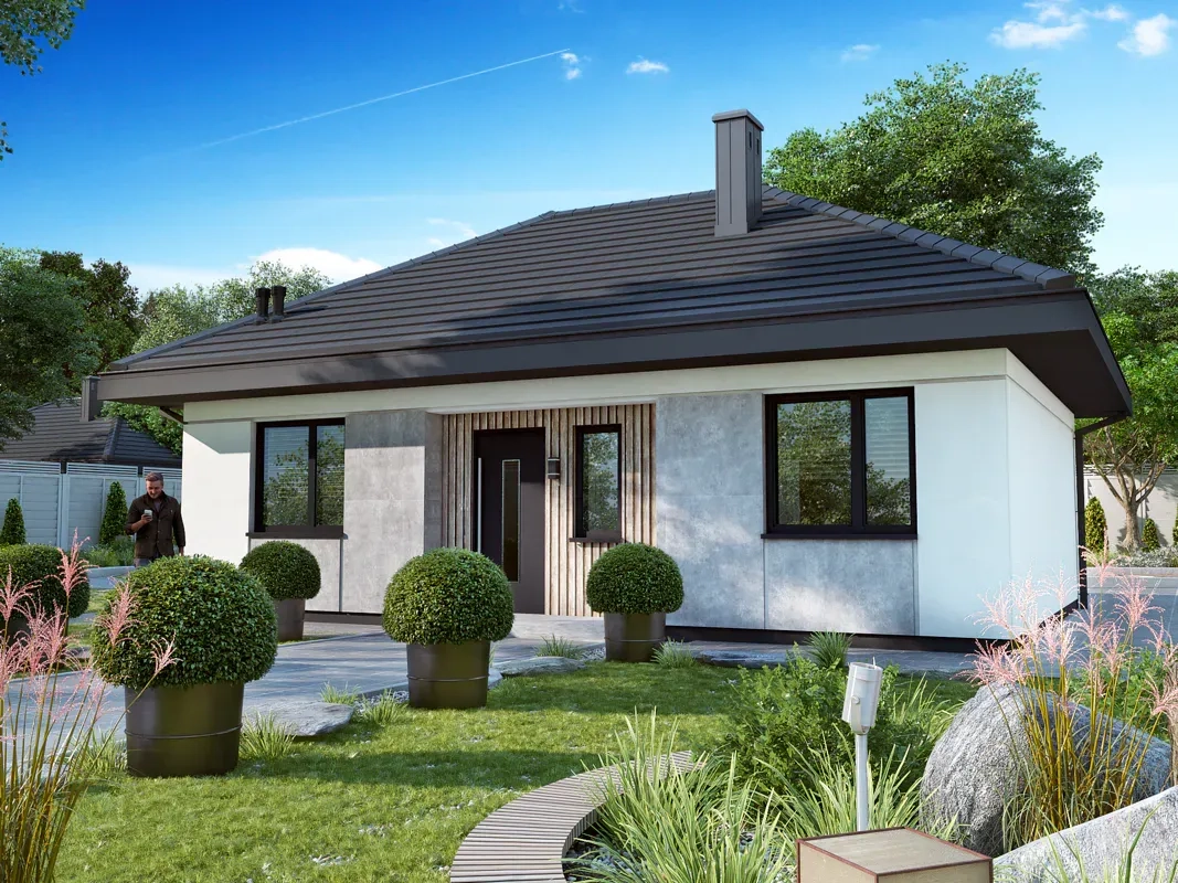 Просторная терраса с зоной летней кухни станет излюбленным местом отдыха всей семьи, а навес для автомобиля защитит от осадков и солнца. Благодаря продуманной компактной планировке дом подойдет для проживания небольшой семьи или станет отличным вариантом для загородного отдыха.