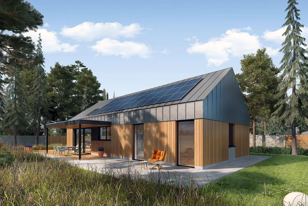 Одним из преимуществ дома является широкое остекление, открывающее панорамный вид внутри, гармонично сочетающее интерьер с окружающей средой.