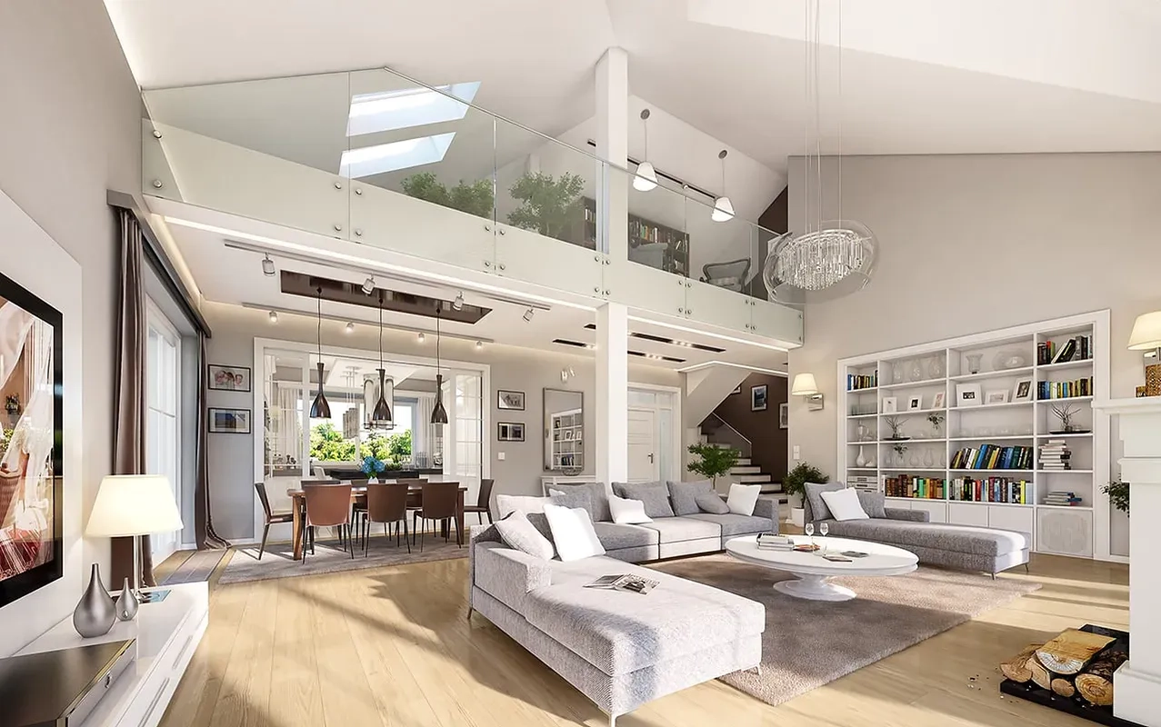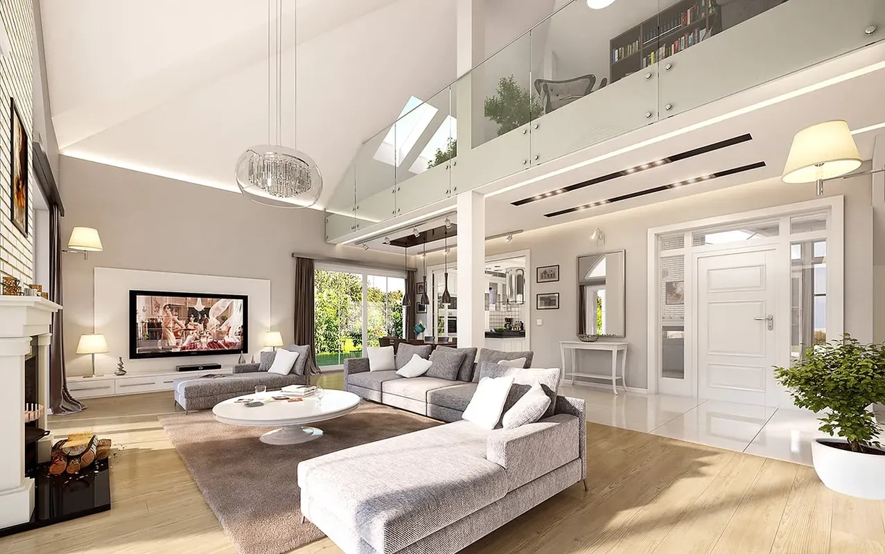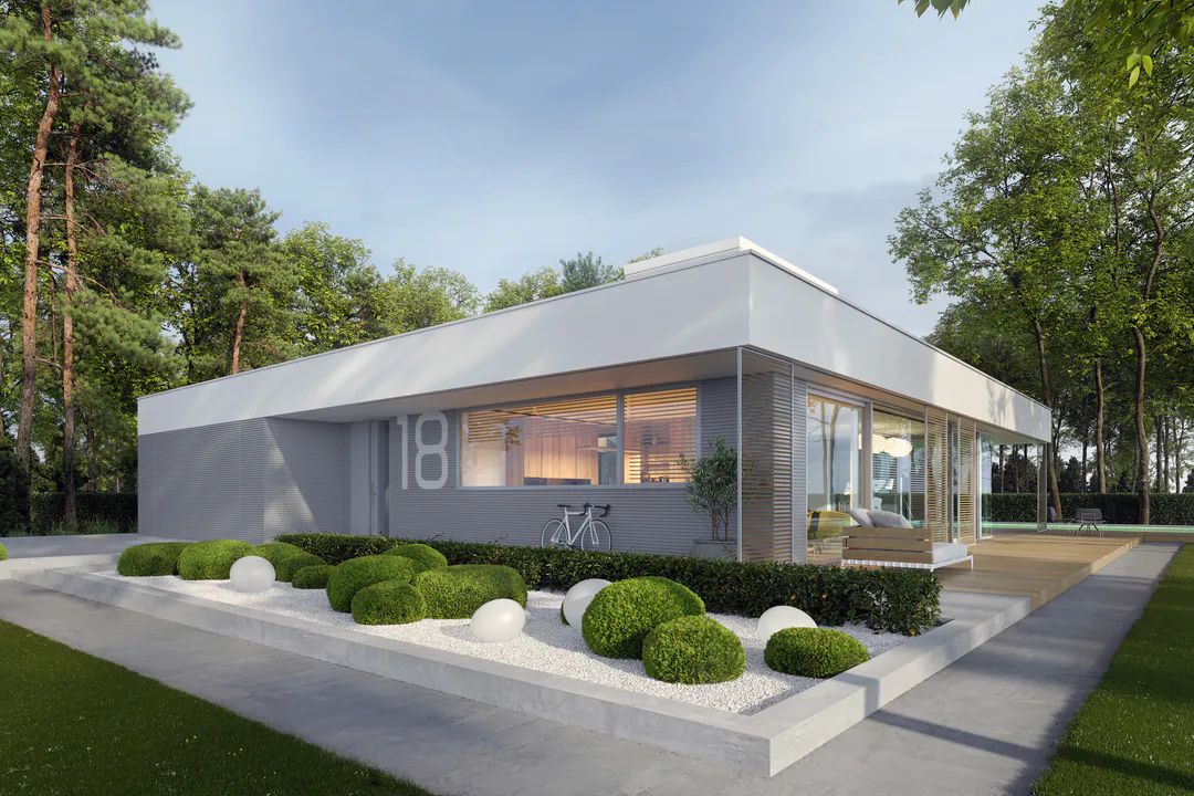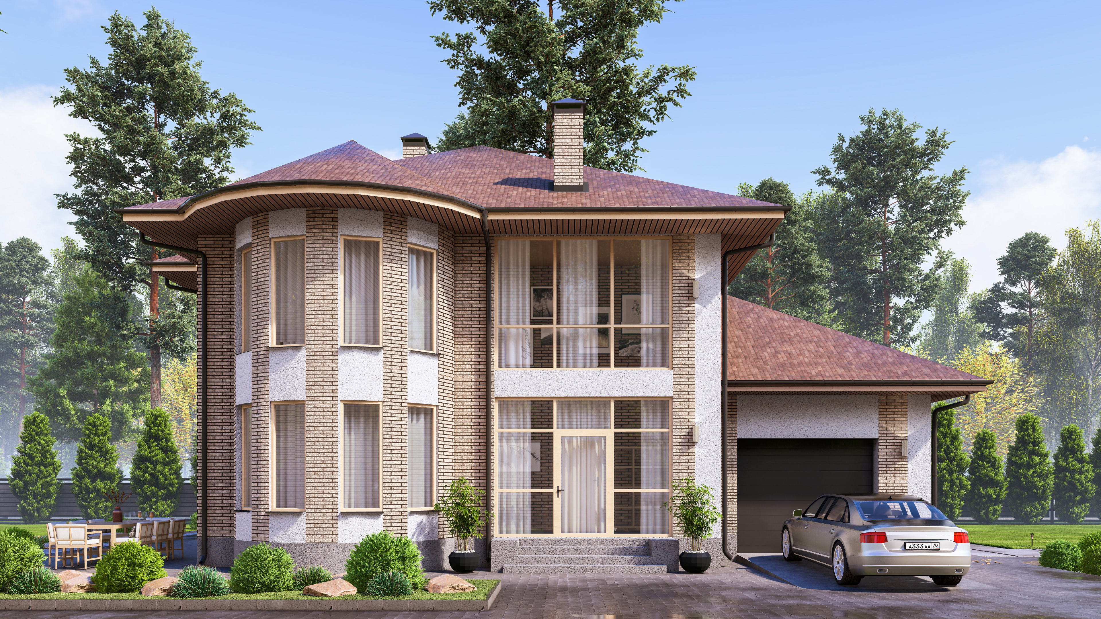 Оригинальный проект современного двухэтажного дома со стильной архитектурой, сочетающий классическую эстетику с современным интерьером.