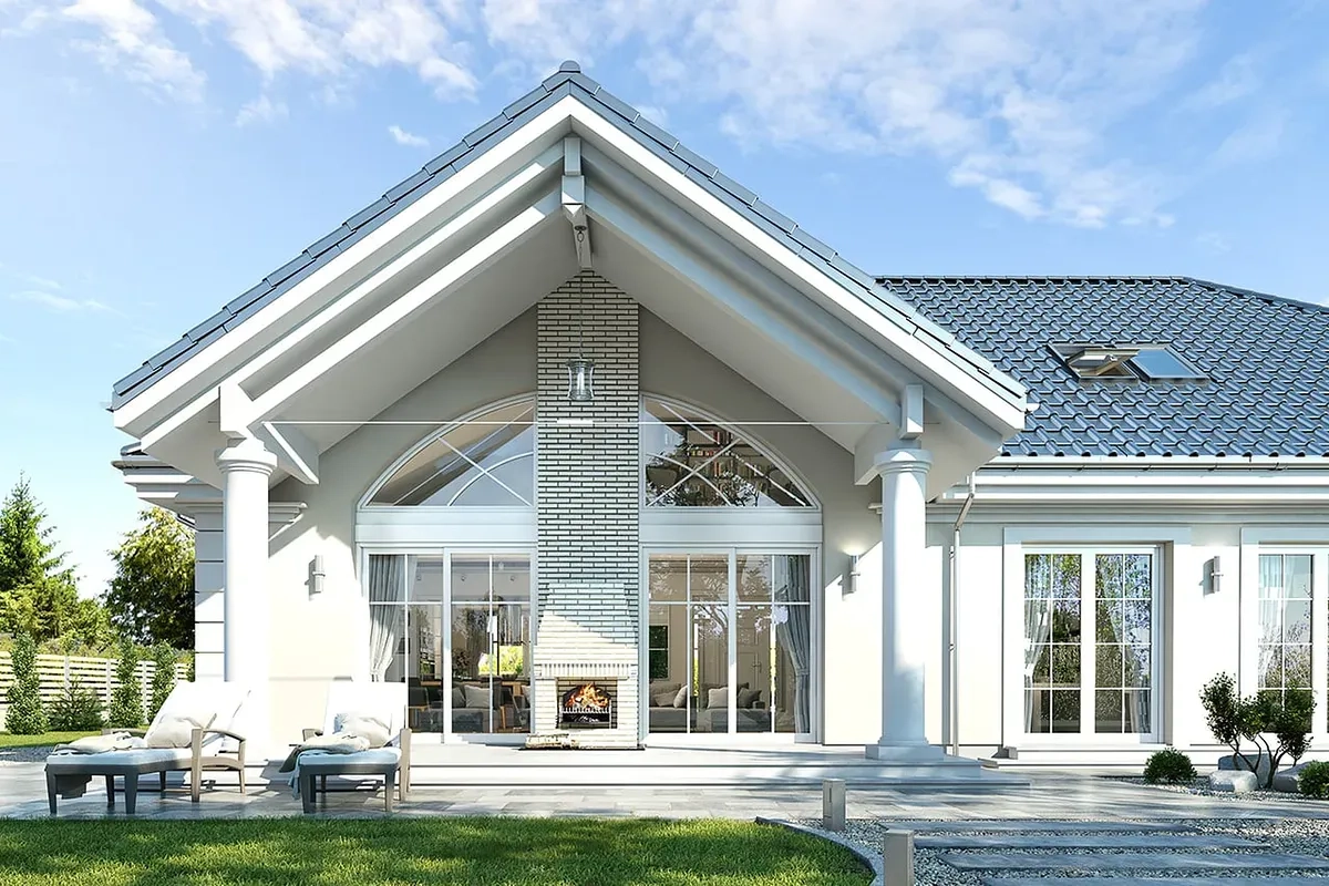 Каждый элемент фасада был тщательно продуман и сочетается в едином классическом стиле. Архитектурные детали добавляют шарма и элегантности этому дому, делая его по-настоящему особенным и запоминающимся.