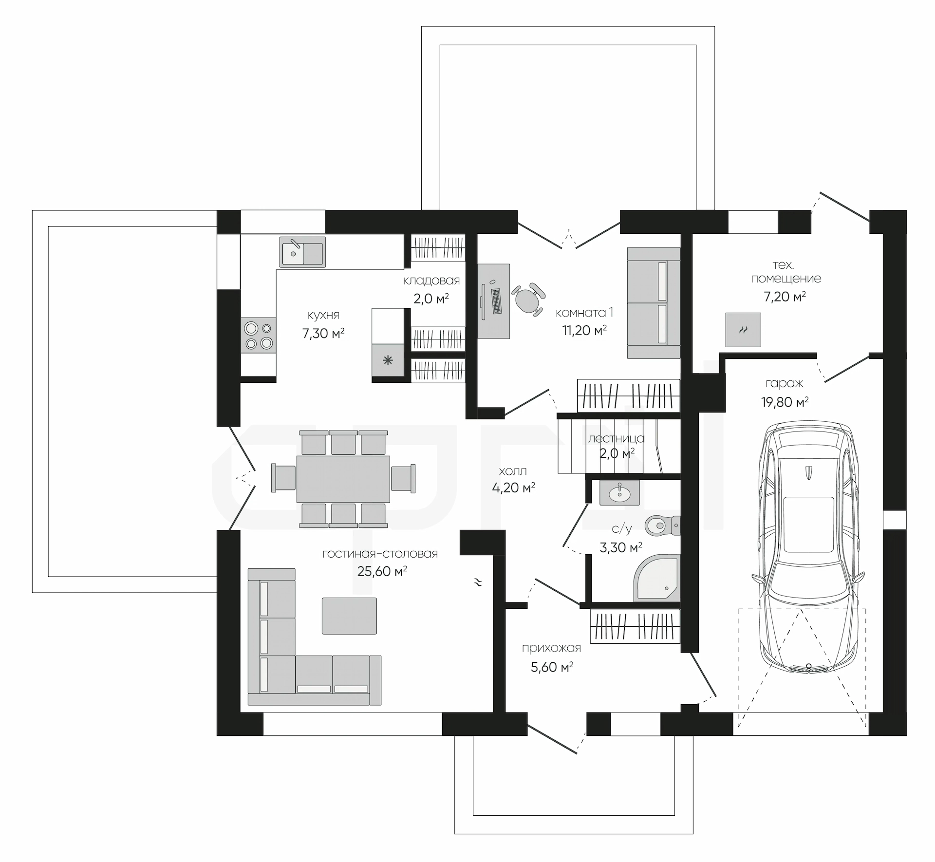 Дома 1 этаж с гаражом и террасой