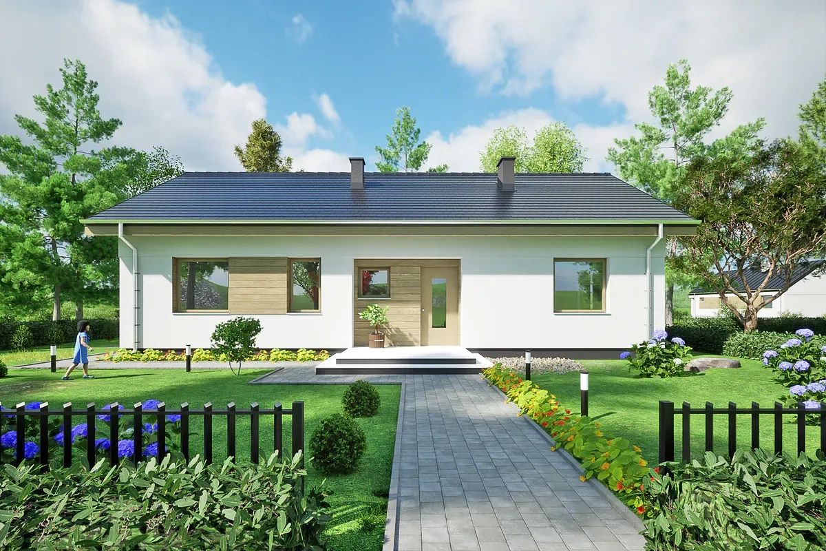 Небольшой одноэтажный дом простой конструкции, для семьи из 4-5 человек.