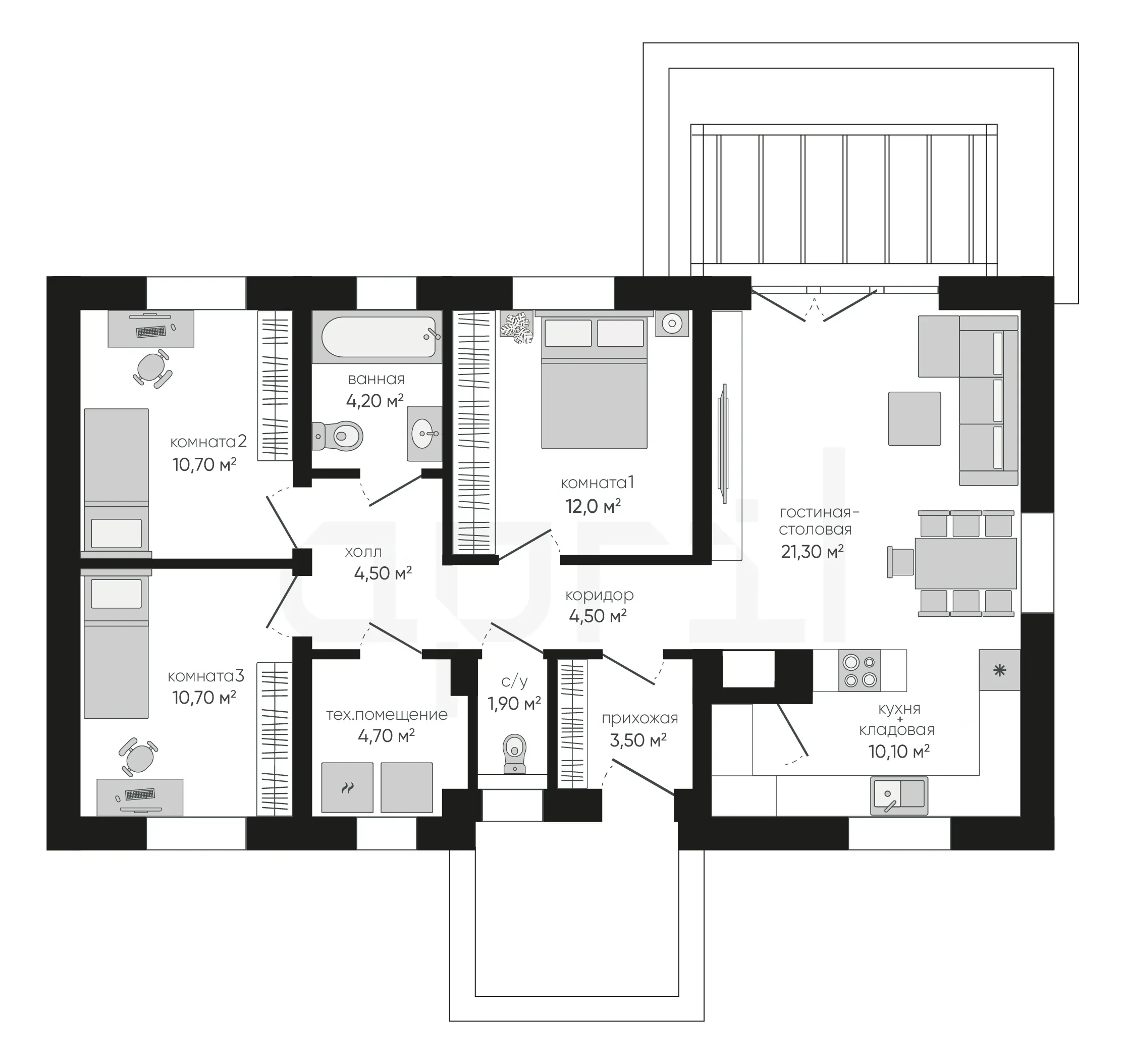 10,70 м²