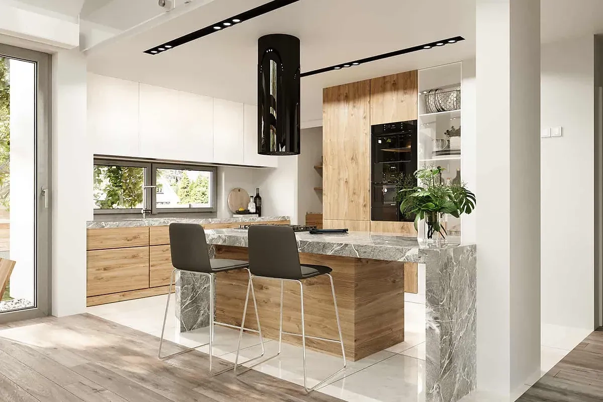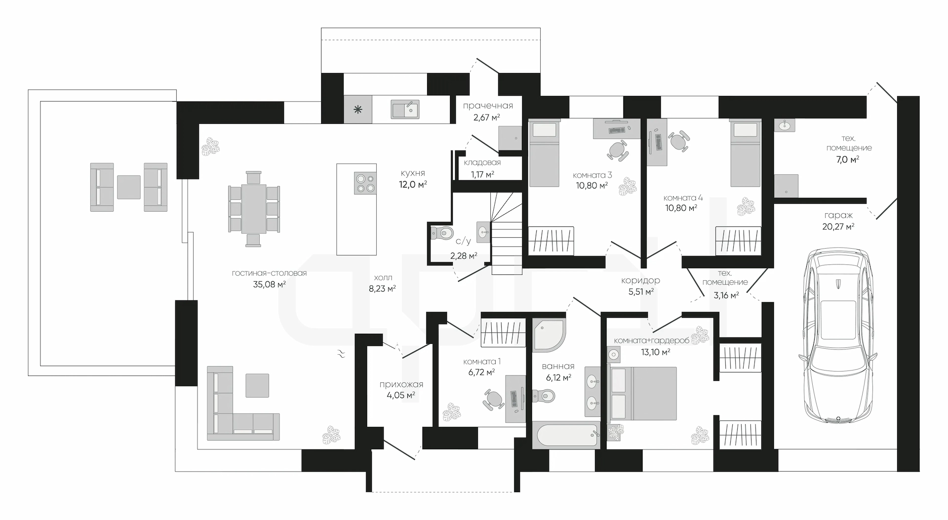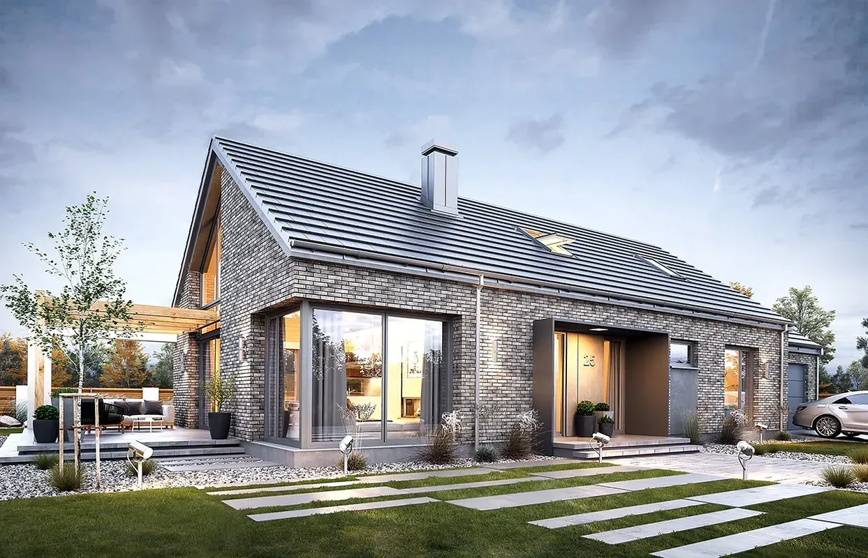 Функциональный, удобный дом с современной и привлекательной архитектурой, предназначенный для семьи из четырех или пяти человек.
