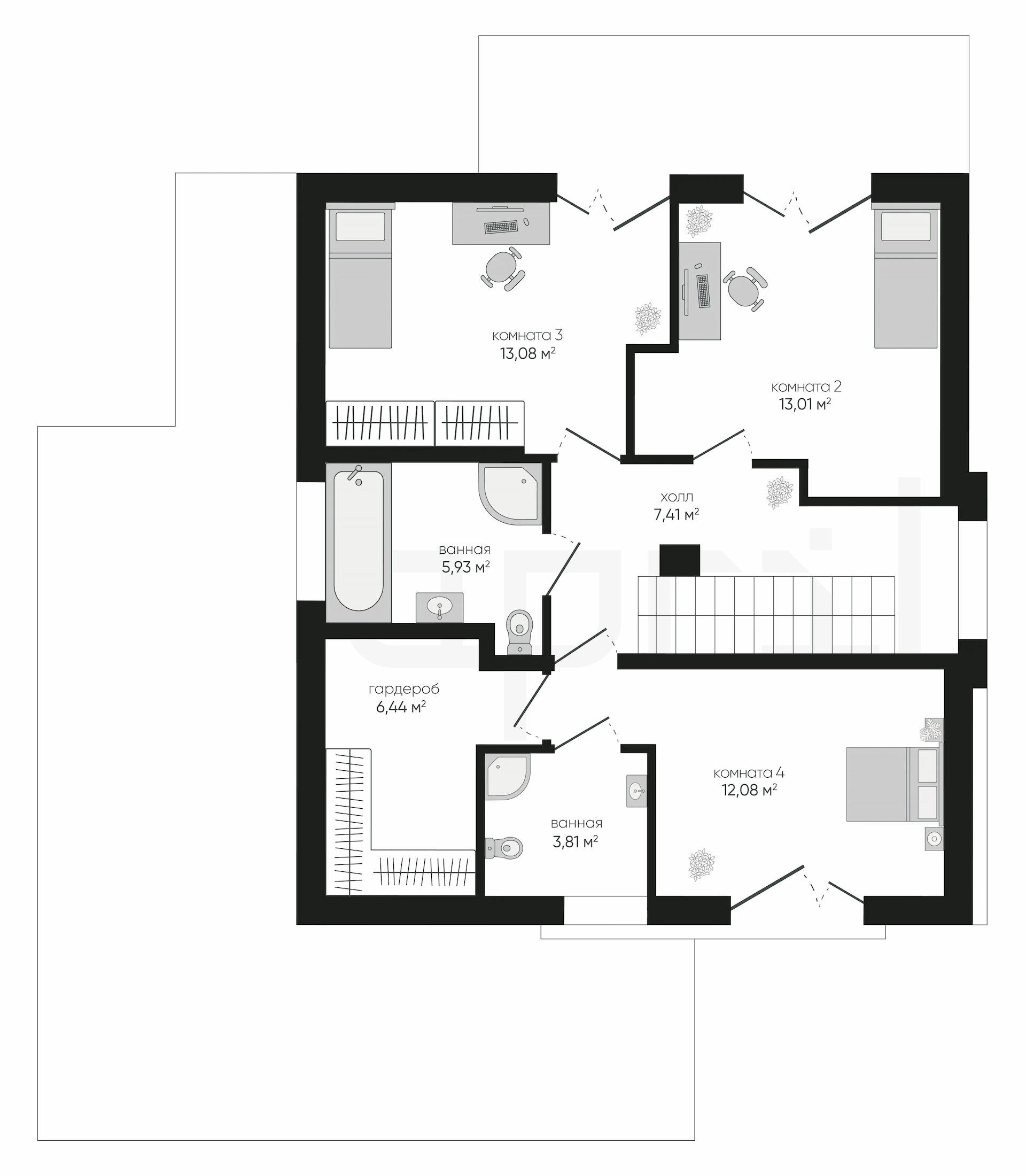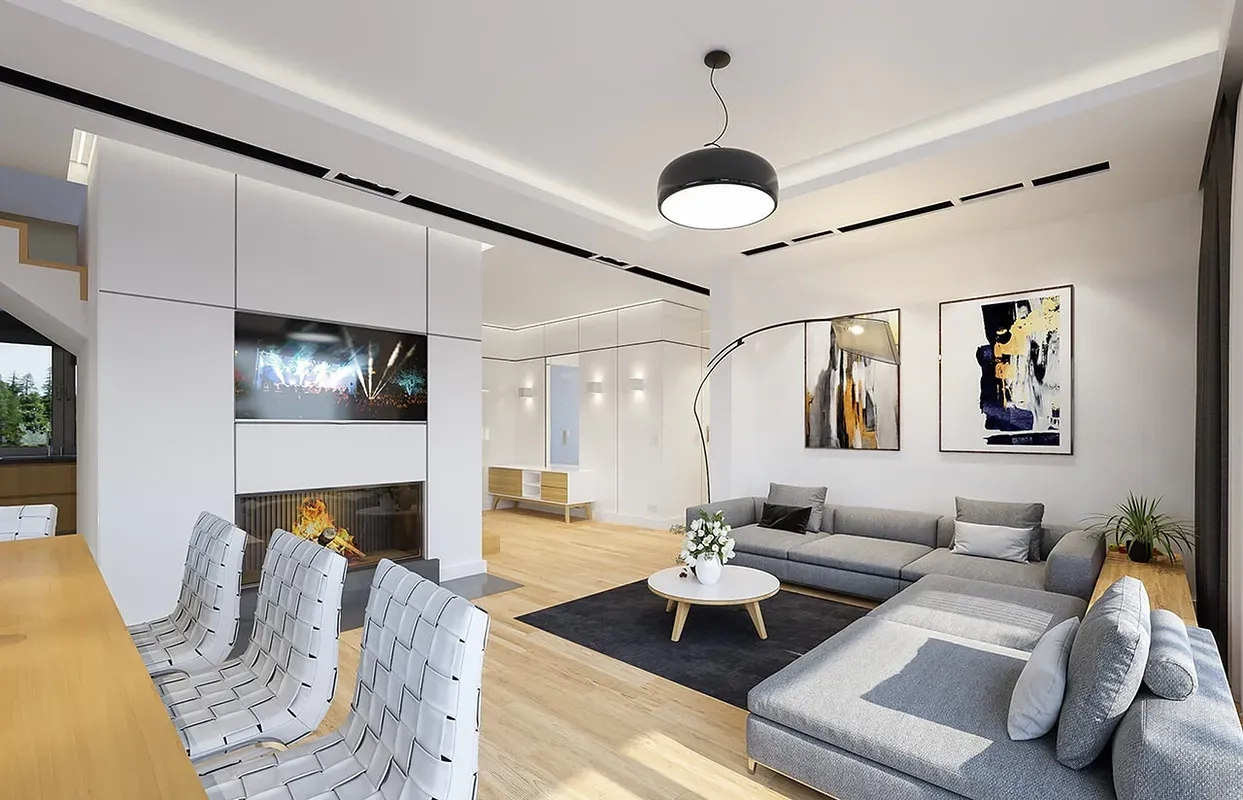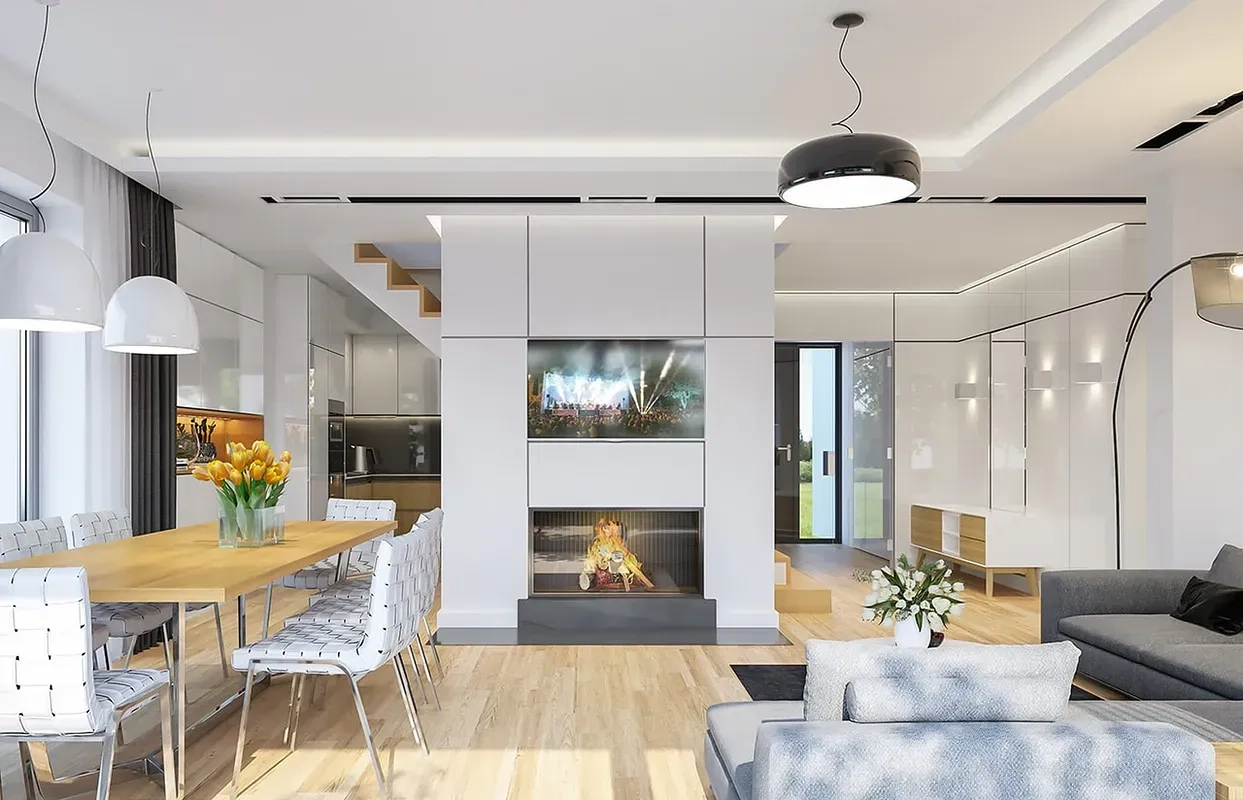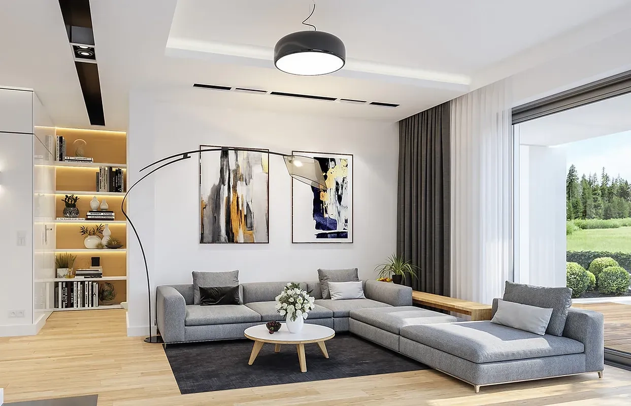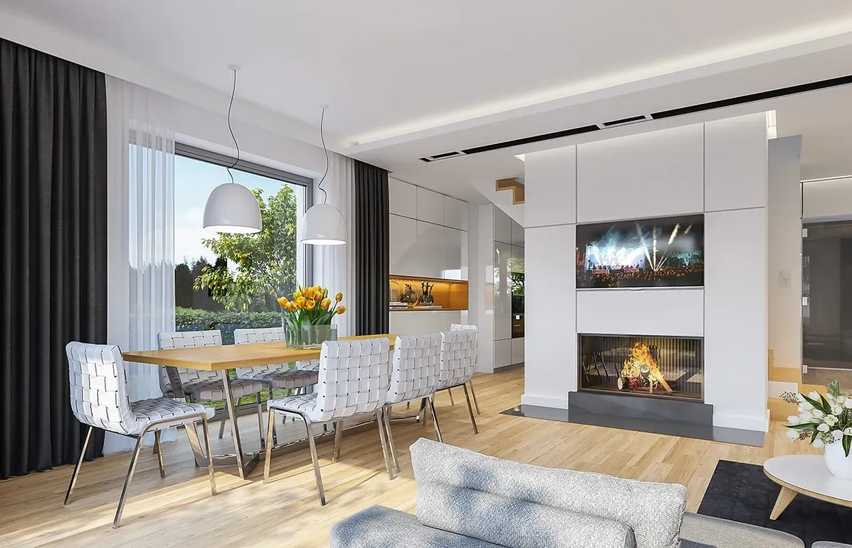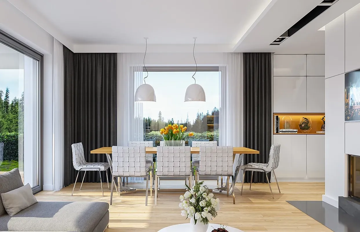 Проект дома сочетает в себе функциональность, комфорт и стиль, что делает его привлекательным вариантом для семейного проживания.