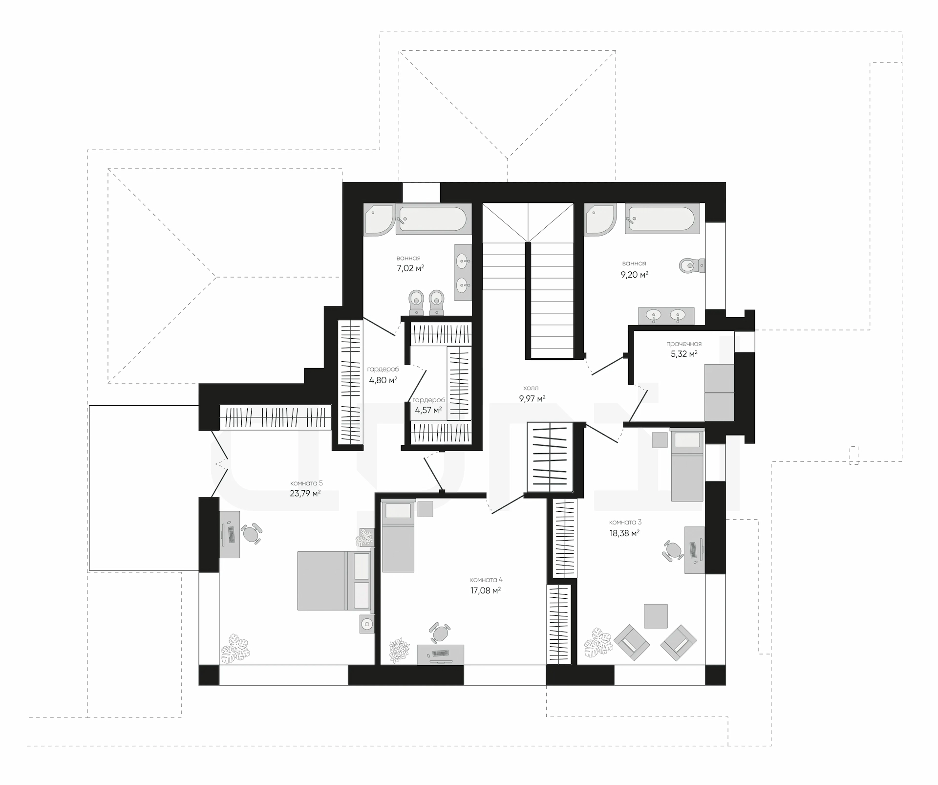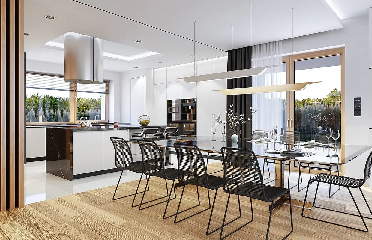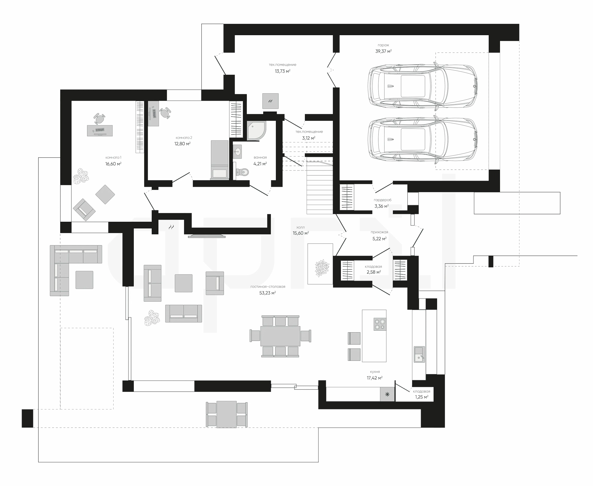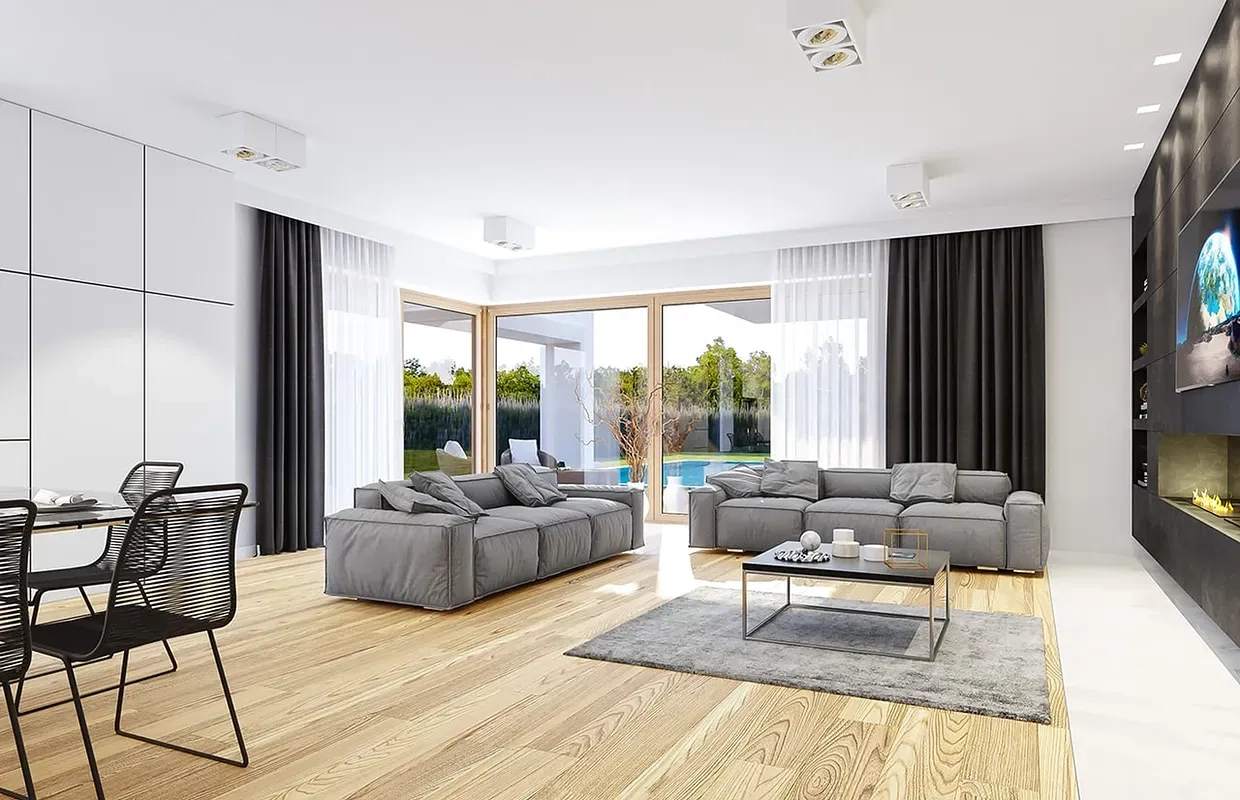 Сочетание красивого дизайна, комфорта, функциональности делает проект по-настоящему уникальным и впечатляющим. Придомовая терраса и большая площадь остекления соединяют дом с окружающей природой, создавая непередаваемую атмосферу легкости и воздушности.