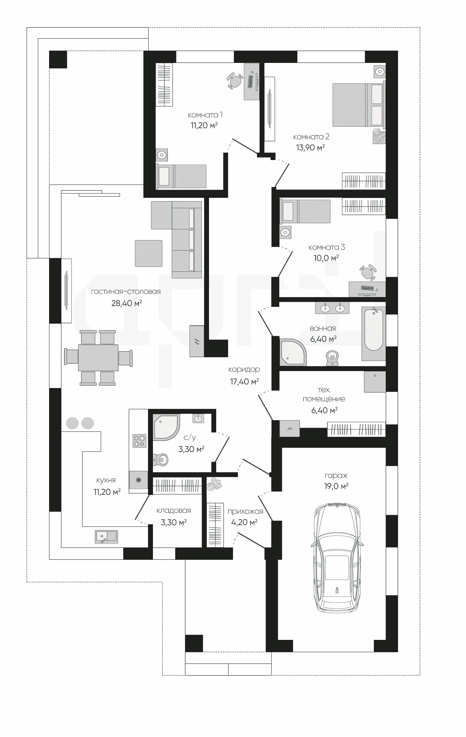 В каталоге компании April представлены проекты одноэтажных домов с гаражом, созданные для комфортного проживания в Тюмени и области. Мы предлагаем готовые решения и индивидуальные планировки домов с гаражом, где всё продумано до мелочей — от размещения комнат до удобного доступа к хозяйственным зонам.