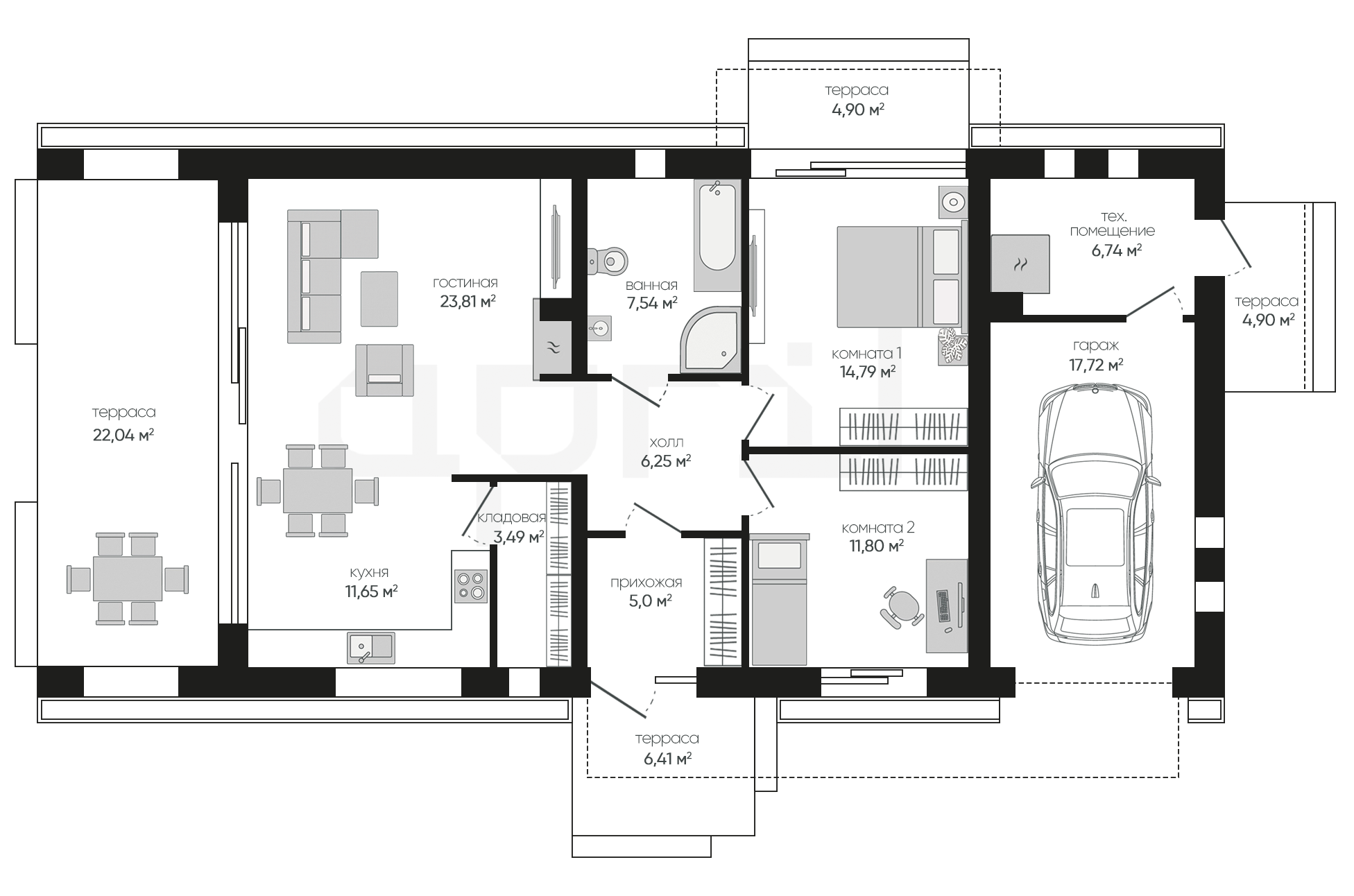 Варианты размещения: фронтальный, боковой, задний въезд. Дополнительные функции: мастерская, мойка, система обогрева пола в гараже.Современные технологии, продуманные планировки и высокое качество строительства. April реализует проекты любой сложности под ключ.