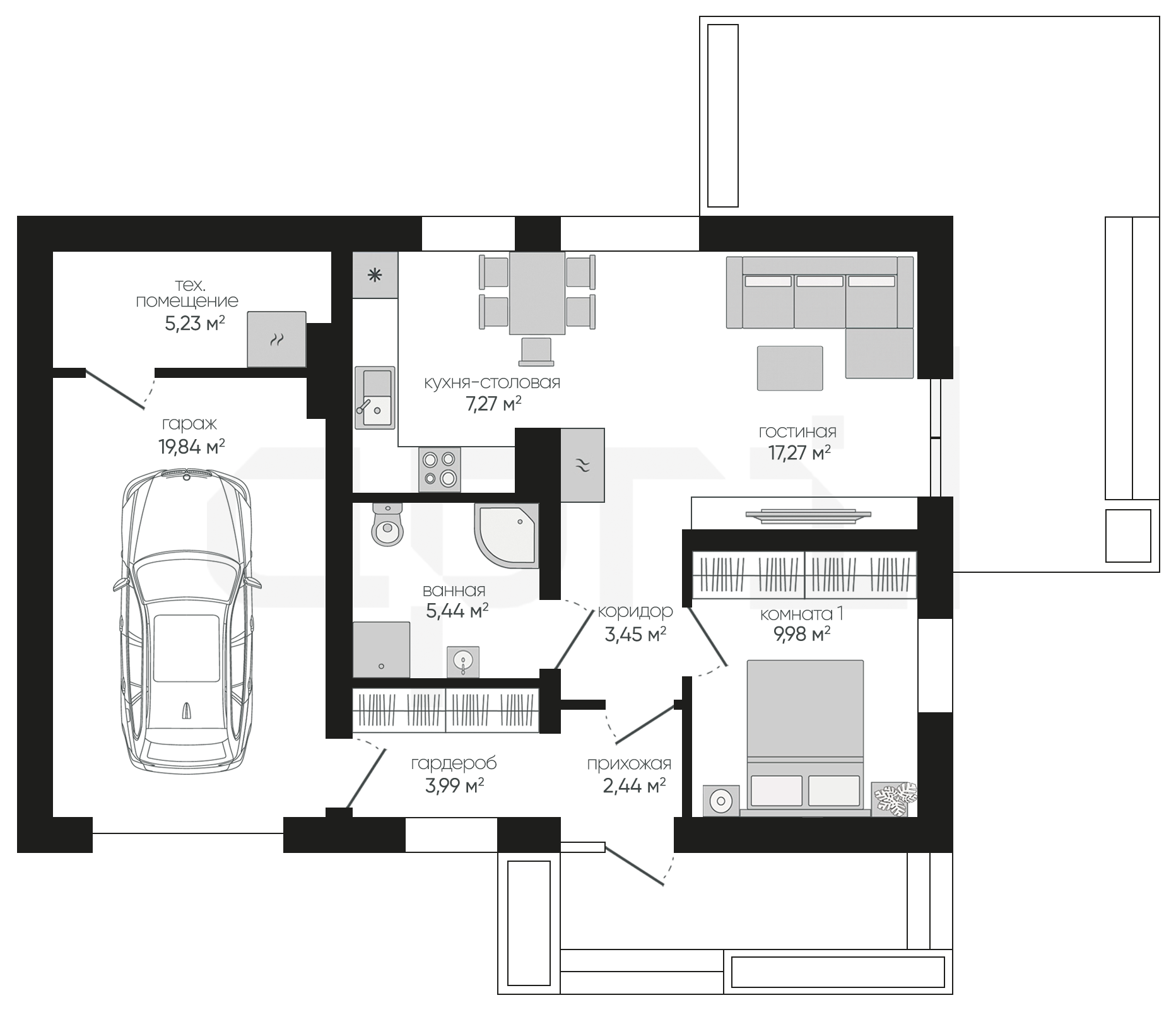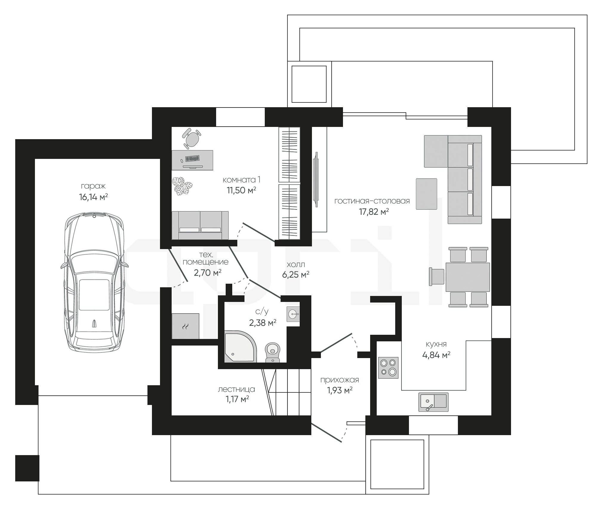 Отдельный вход в гараж с возможностью организации мастерской